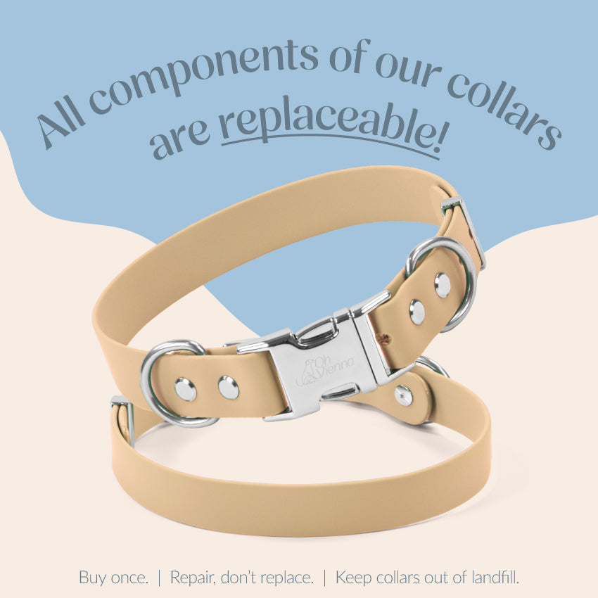 Our collars are custom-designed in New Zealand with a focus on durability, comfort, and modularity. Each component is replaceable, which means less waste and longer use. We also use rivets instead of traditional sliders, so the fit stays secure and doesn't loosen over time.